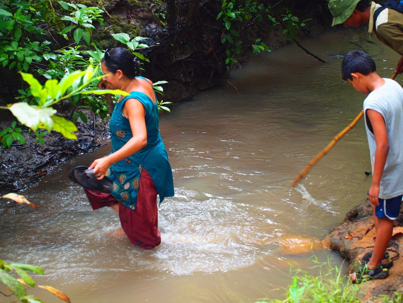 地図で見ると目的地の「CHOMRONG」は標高的には低い所にある。しかし、道中大きな川がある。そこを橋で渡って越えるということは、いったん一気に下ってまた上がるということなのだろう。「どうせ、なだらかな下り坂というわけじゃないんだろぉ!」ここまで来るとなんとなくトレッキングというものがわかってきた…最初は晴れて気持ちの良かった日差しも、後半は急に姿を隠し代わりに豪雨がやってきた。本日も盛りだくさんな一日であった。