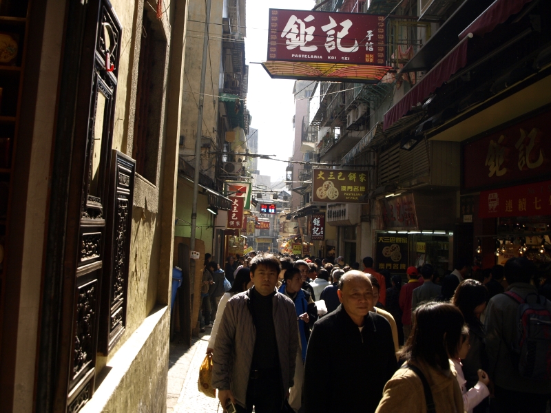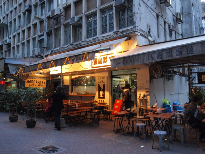 マカオ名物である「エッグタルト」の名店。もう一つの名物「杏仁餅」。タイパ島にはポルトガル料理屋が並ぶ。