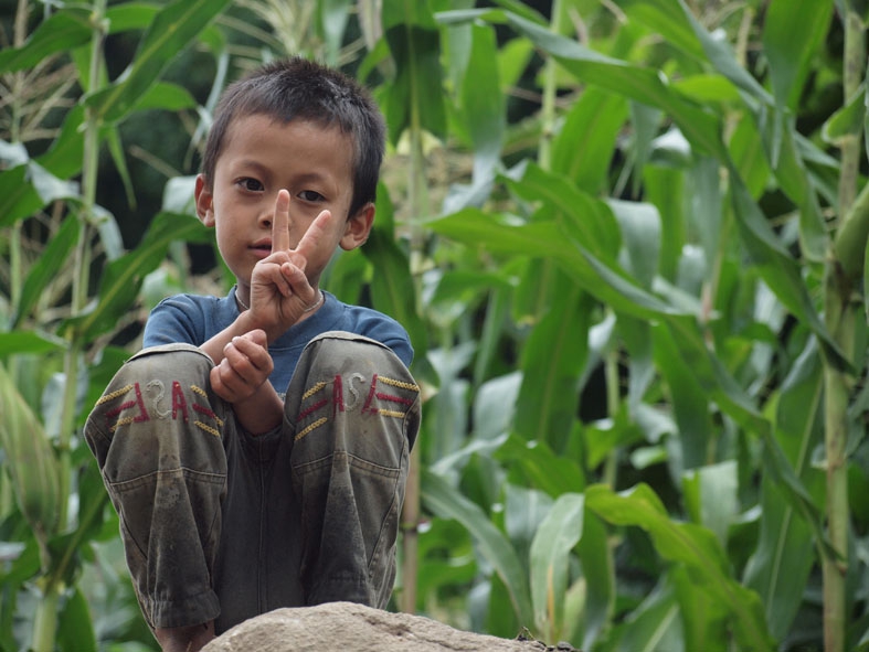 ゴレパニでほんのちょっとだけではあったがヒマラヤの山を見ることができたので、今度は大本命アンナプルナB.Cを目指す!3日目の宿泊地タダパニも、正面にマチャプチャレがそびえる景勝地だが、残念ながら雨のためまったく見えず。でも可愛い客引きの少年に誘われて泊まった宿は、停電していたが雰囲気が良く、楽しい一夜が過ごせた。