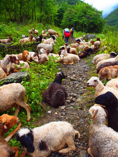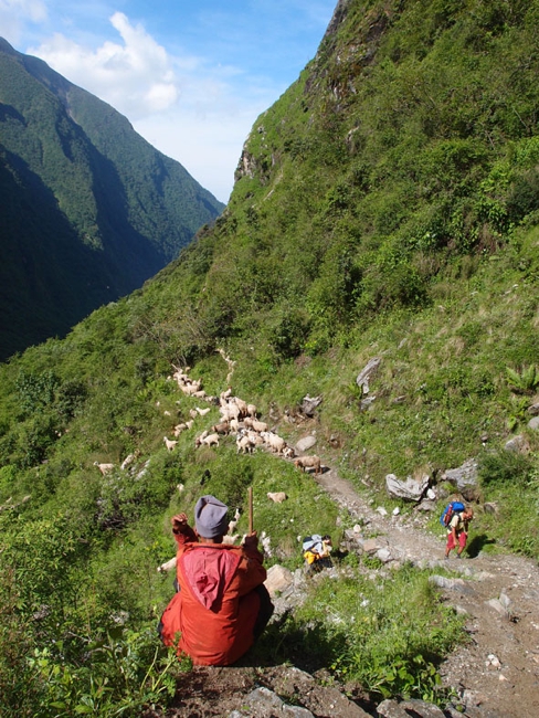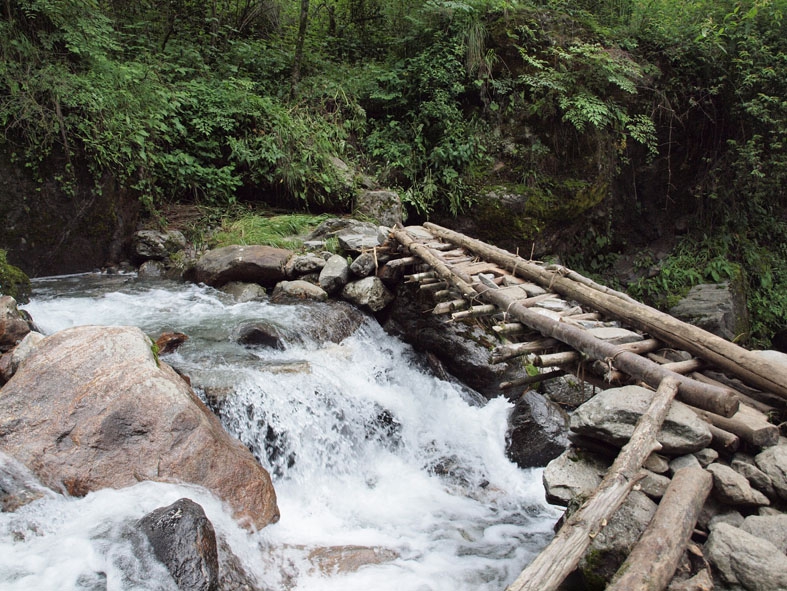 「CHOMRONG」からはいよいよ本格的なトレッキングが始まる。最初の目的地の「SINUWA」は「CHOMRONG」から見えているのだが、やはりここにも集落と集落の間に川があり、川までひたすら下ってただただ上らなければならない。その後はさらに上りが続く。我らの膝はそろそろ悲鳴をあげ始めている。