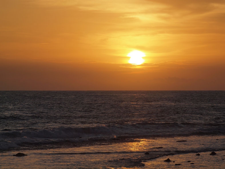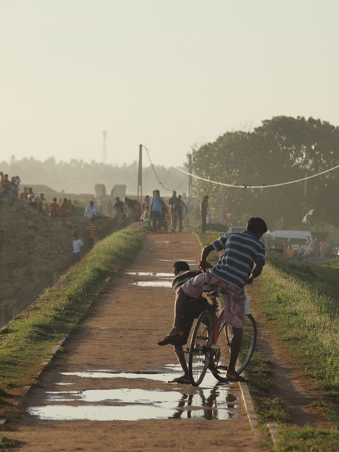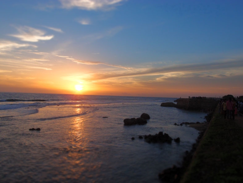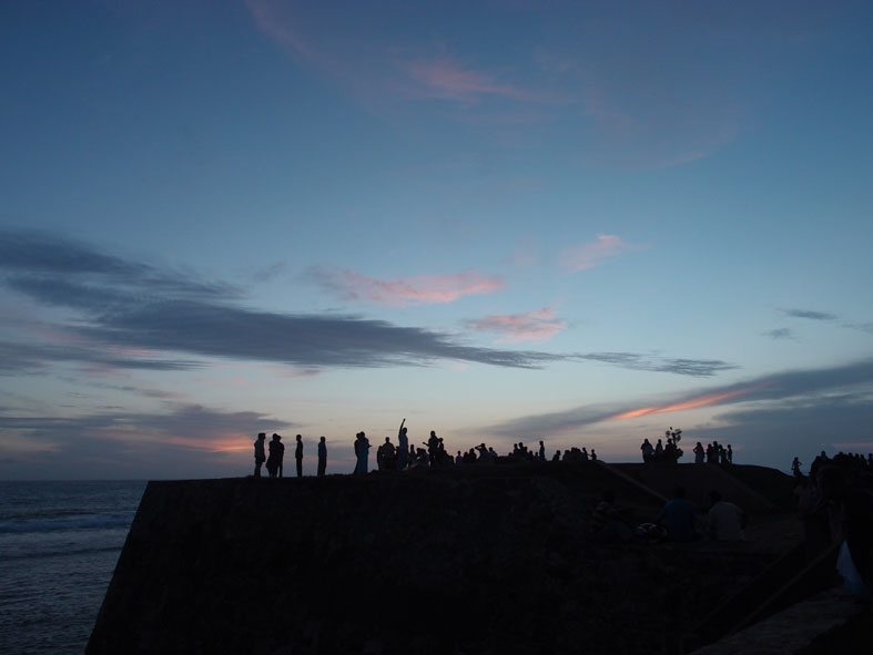 ハプタレーからバスを乗り継ぎ乗り継ぎして、8時間かけて南部最大の街であるゴールにやって来た。スリランカで僕が知っていた数少ないかつての貿易港だ。砦に囲まれた旧市街、そこに打ち寄せる高波。その姿をテレビで観て、大航海時代に思いを馳せたりしていた。けれど、ハプタレーからゴールに来る途中、いくつもの素敵な街や海岸線を抜けてきて、「途中下車」という言葉が脳裏に何度も浮かんだ。「ゴール」という街に憧れはあったが、きれいな海を見ながらバスに揺られているとそんな思いが消えてしましそうだった。ただ、ハプタレーの次の街は、今回の旅で最後の滞在地だった。つまり、「ゴールの場所」だったのだ。そこで、ただただ語呂遊びという意味でこの「ゴール」の街にやって来た。観光地で物価も高いけど、旅の終わりに静かに沈む夕日を拝むことができた。