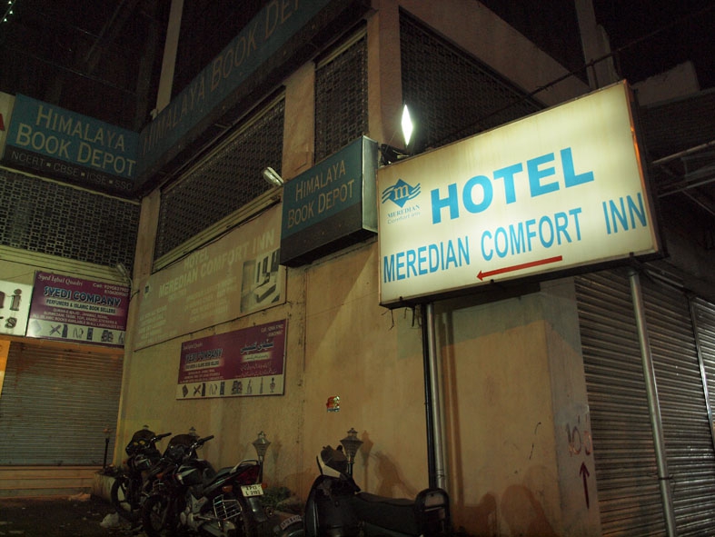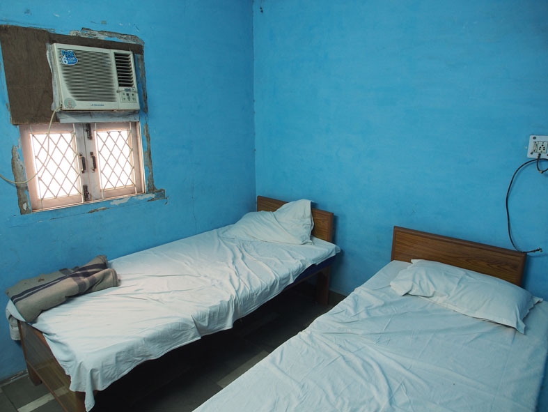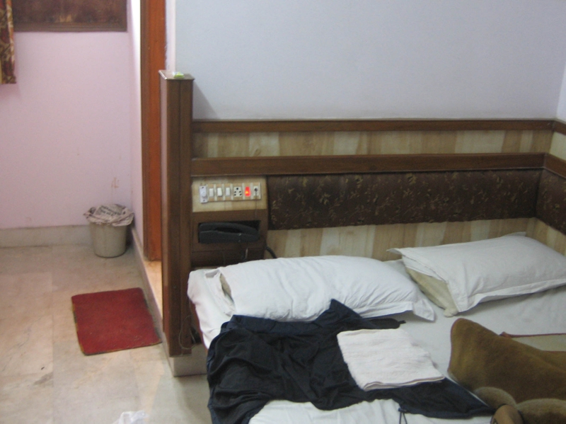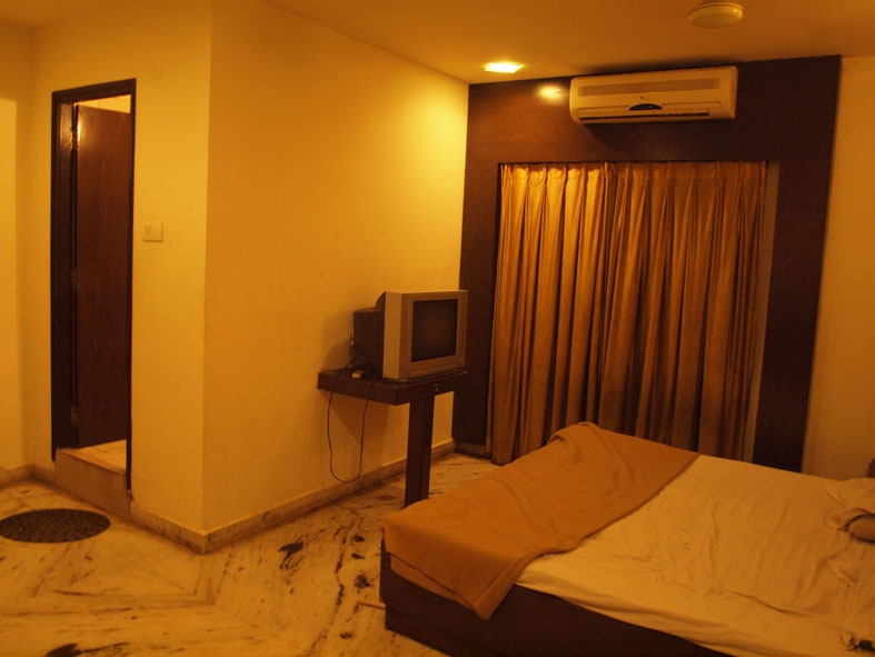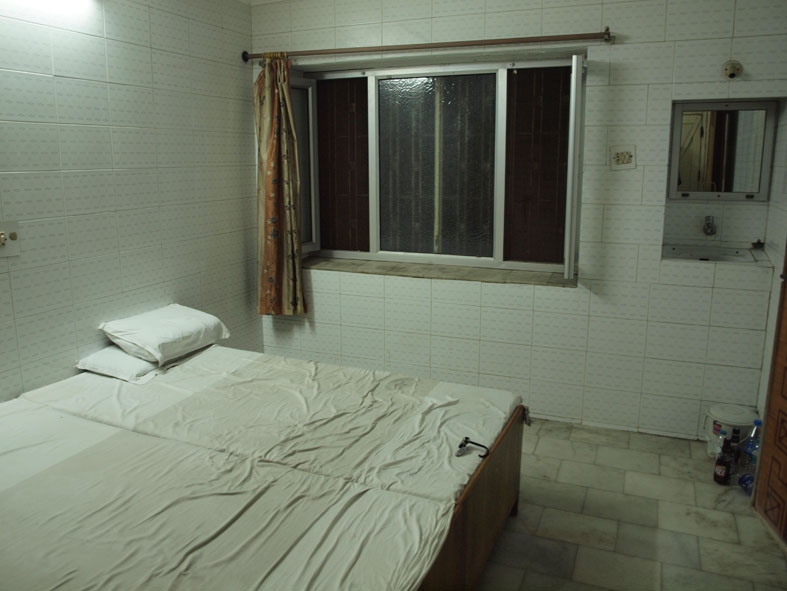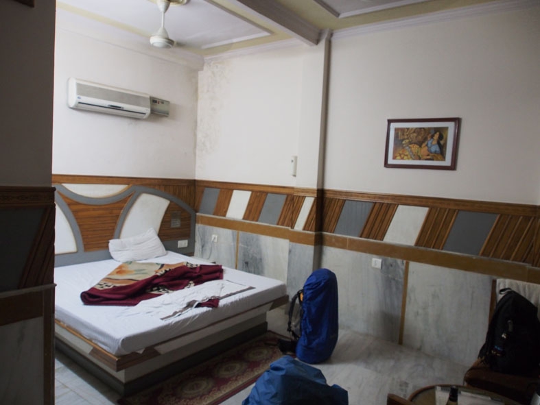 [comment]夜に着いたため客引きのお兄ちゃんに連れて行ってもらった宿。何件か見たが、どこも汚い割に高い。最安RS400の宿はシャワーのない部屋。どこも虫が出そうだったので高いけど割と綺麗な宿に泊まることにした。部屋は一見綺麗そうだが設備はメンテナンスがされておらずボロい。なによりも黴臭い。ハイダラーバードにしてはいい宿なのかもしれないが…。24時間制。