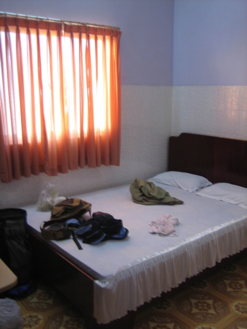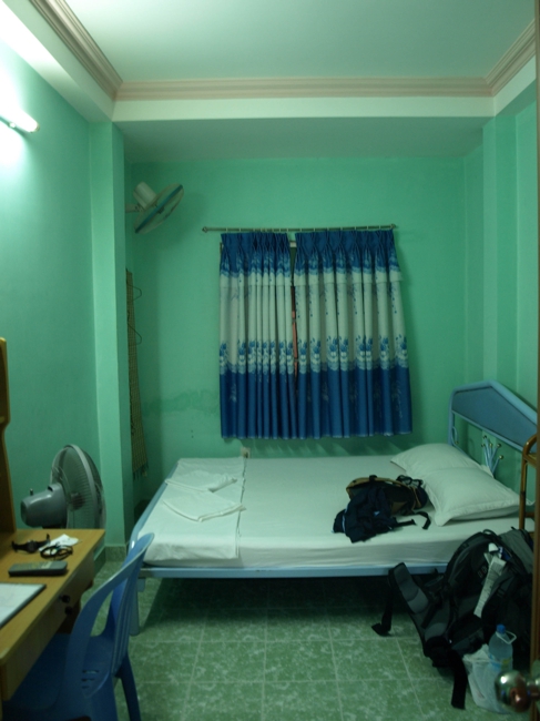 [comment]とりあえずメコン川沿いの宿を目指してなんとか辿り着いた宿。ここも1フロアーに1部屋。道中バイタクのおっさんに絡まれて面倒くさくなって逃げるように駆け込んだ。そのおっさんはメコンクルーズの勧誘もしていた。建物•設備とも古いがなかなか快適な宿だった。