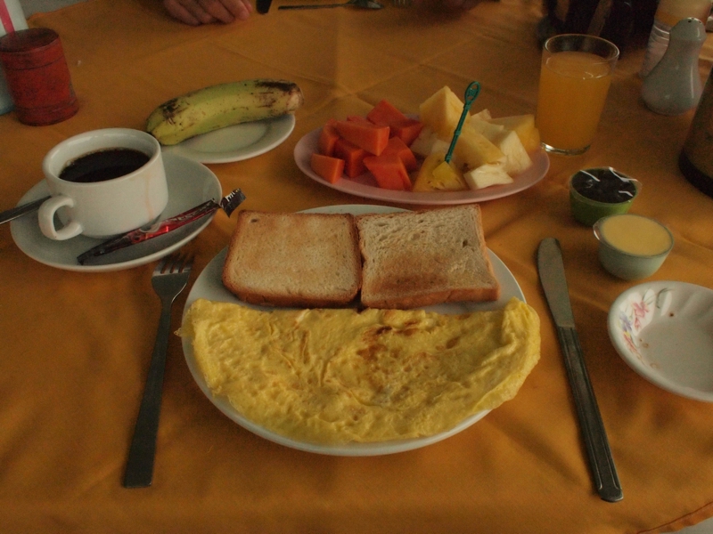 [comment]モンユワには外国人が泊まれる宿が少ない。そのせいかモンユワに行く旅行者はほぼここに泊まるのではないだろうか。キレイな中庭を抜けて行く新館は新しく設備も豪華だが、旧館は古い。大きい窓が付いているが、部屋はカビ臭かった。この旅イチバン豪華な朝食付き。隣に併設されたレストランで食べる。新館は20$。パコック行きのバスは小さい上に本数が少なく混むので、前日までに購入しておく方が良いと思う。
