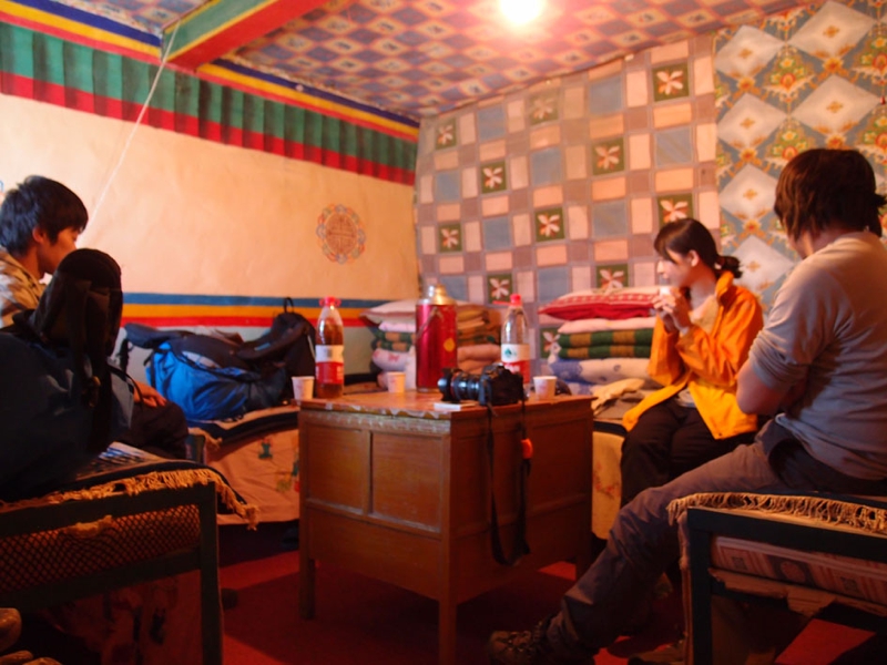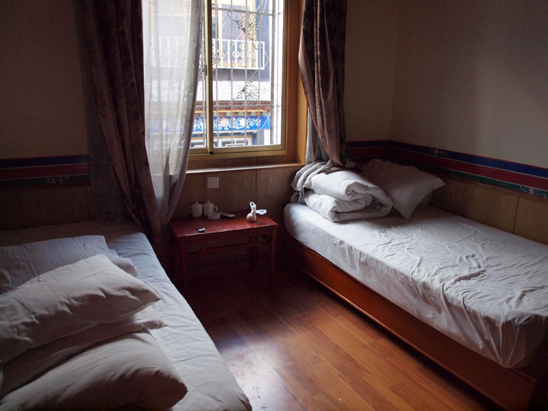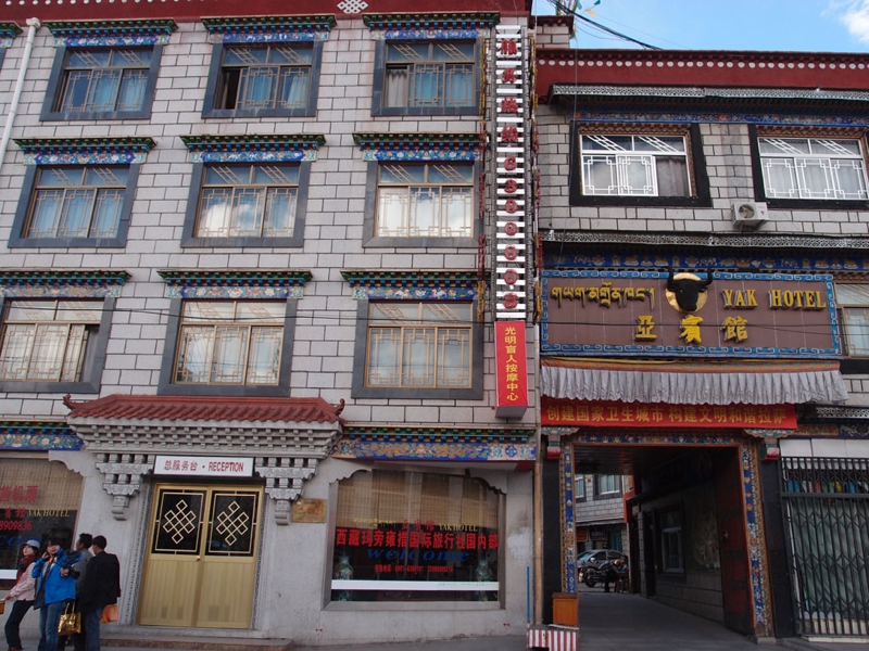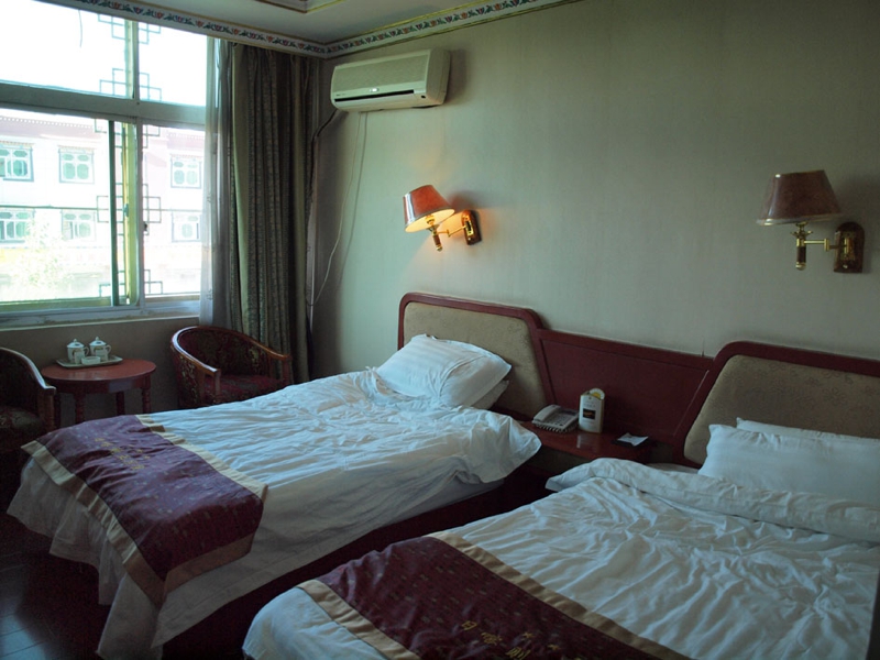 [comment]ガイドお勧めの宿「珠峰友誼賓館」がなぜか外国人の宿泊を拒否しており、旦増賓館(テンジン・ホテル)のドミは65元と高値でしかも共同シャワーがないとのことだったので、高めの宿に泊まることにした。正規の値段は580元。ガイドのコネで安く泊まれた。見かけは良いが、設備は機能していないものが多い印象を受けた。お湯は出が悪く寒かった。朝食込み。拉薩の「YAK HOTEL」と同系列らしい。