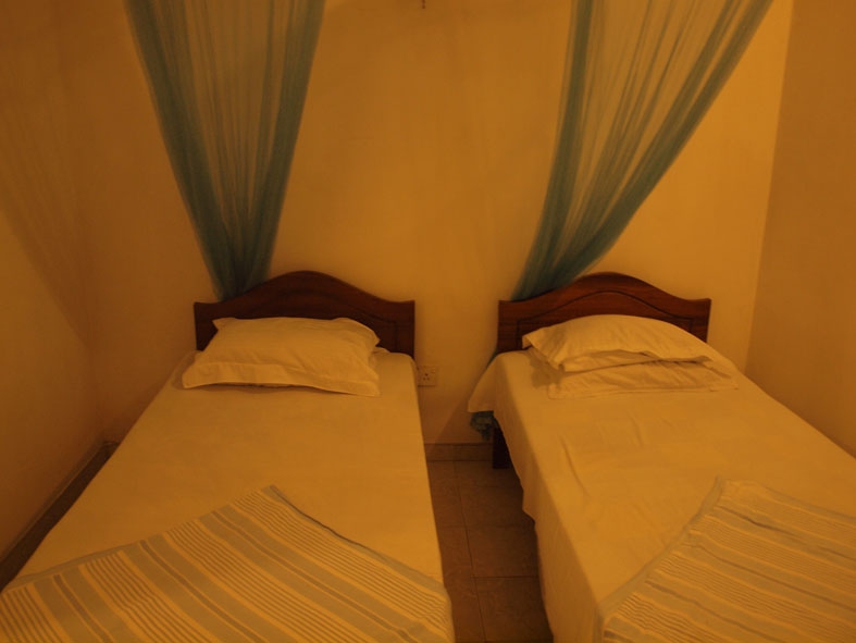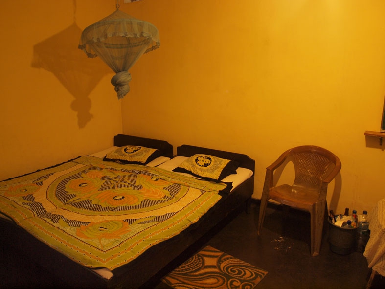 [comment]夜に到着したので客引きもおらず、ガイド本を頼りに探し歩いた宿。欧米人がよく利用しているようで部屋は常に満室気味。早めにチェックインした方がよい。庭があって開放的な雰囲気で、部屋もピカピカ。安い部屋は風通しはよくないがジメッとした感じはしなかった。マダムや宿のスタッフはよく動くし感じがよかった。宿の飲食はとても高かったので利用していない。自転車はRs.250/日。部屋ごとに値段が異なり、Rs.1,500が一番安い部屋だった。SC込み。