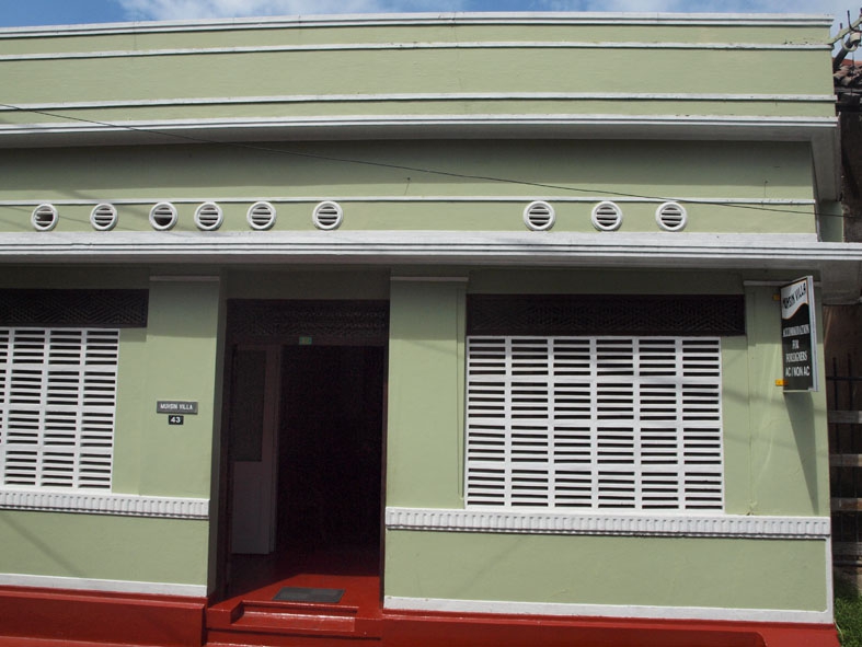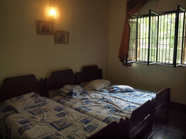 [comment]週末の「ボヤ・デー」に来たため、どこも宿は満室か空室があっても高く探しまくってようやく見つけた宿。看板が小さく一見民家のようだが、外国人に部屋を開放している。マダムはとても気さくで陽気。ディスカウントにも快く応じてくれた。建物および部屋はとても清潔で、特に部屋はホテル並みの綺麗さと設備を有している。ただ、なぜかゴキブリが多い。Wifiは1階のみ。SC込み。