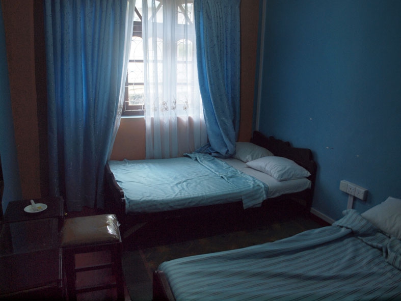 [comment]大通りを歩いていると宿の関係者が声をかけて来るが、その中で一番コストパフォーマンスの良かったのがここだった。部屋はレストランの下にあり、普通に家族が生活している。部屋はとても清潔で広い。建物の共用スペースを使うこともできるのでのんびり過ごすことができた。大通り沿いにあるので、周囲には商店も多いしローカルバーも近い。SC込み。ちなみに隣の雑貨屋の上の部屋はRs.1,500。