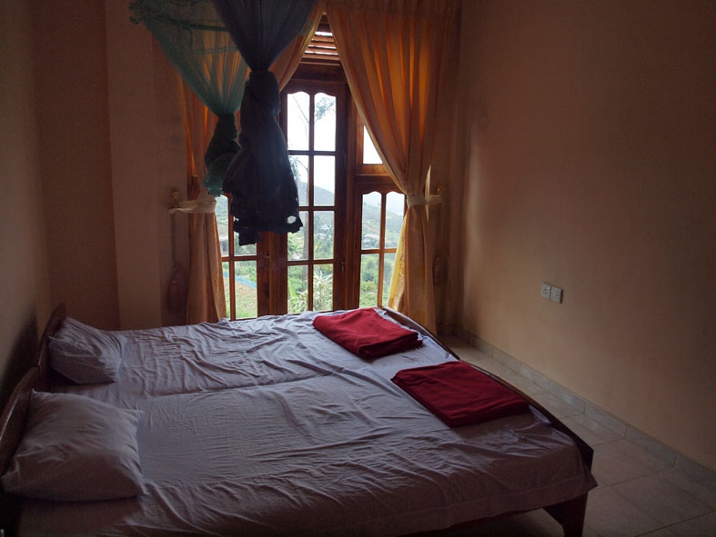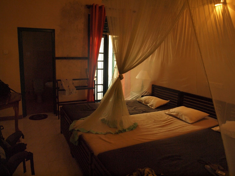 [comment]キャンディには安宿がなく、一般の家にお邪魔する方がいいとネットに書いてあったので、トゥクトゥクを使いたくない僕らは湖の北側の家を実際に訪れてチェックし、一番安かったこの宿に決めた。大通りに面しているので窓を開けると少しうるさく、窓を閉めると少し黴臭かったが、熱いシャワーも使えるし、豪邸に泊まれたので満足だった。クイーンズ・ホテルまでは徒歩15〜20分くらい。夜は蚊が多かったので蚊帳がほしかった…SC込み。