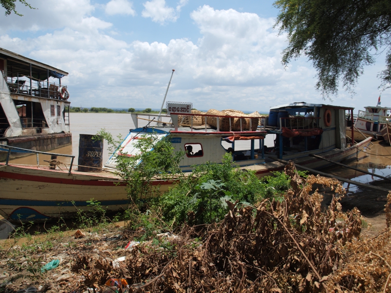 「地球の歩き方」によると、モンユワからパコック経由でバガンへ行けるとのことだが、その情報がページにより異なっている。モンユワで聞くと、パコック行きの午前便は6時半と8時半。パコックまで所要3時間強とのことで8時半発がベターとのこと。パコックには11時過ぎに着き、船着き場には11時半頃到着した。バガン行きの船は1時半発で余裕をもって乗ることができた。雨季のせいかここからバガンへは1時間弱で着いた。船着き場まではパコックのバス停からトゥクトゥクで15分くらいで、1人15000K。